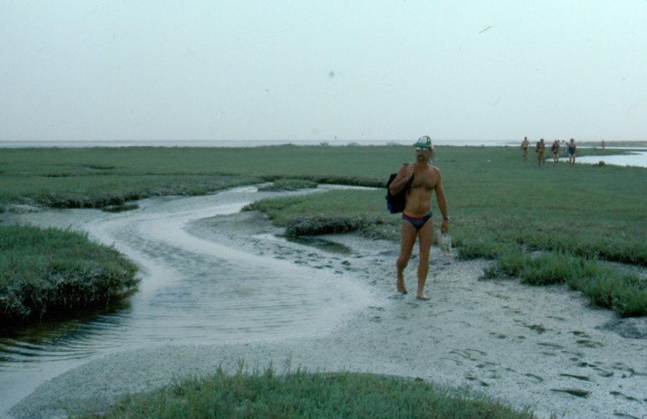 Chenaux de marée traversant les dépôts de plage et les sables colonisés par une flore spécifique aux milieux salés (salicornes). Ces chenaux ramènent les sables (coquilles de foraminifères etc.) loin à l'intérieur des terres. On retrouve aussi des accumulations de ces coquilles de microrganismes marins dans des petites dunes éoliennes.