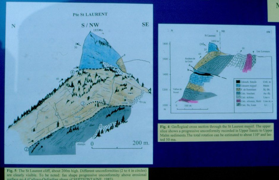 Le massif de St Laurent montre un affleurement exceptionnel où l'on peut observer une discordance progressive unique en son genre, dans les Préalpes et peut-être dans tout l'arc alpin. Les couches sédimentaires jurassiques ont subi une rotation lente et saccadée de près de 110° pendant 70 millions d'années ! C'est le résultat de la déformation de la marge Nord-téthysienne liée à l'ouverture de l'Atlantique central et à la migration de l'Afrique vers l'est. Dans l'article on démontre l'importance de ces mouvements en transpression pendant le Jurassique.