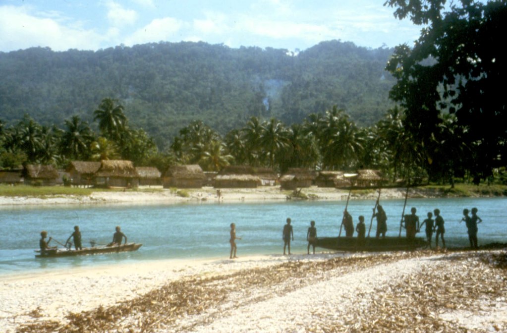 Retour au calme serein d'une vie dite "primitive". Un village côtier de Nouvelle Bretagne.
